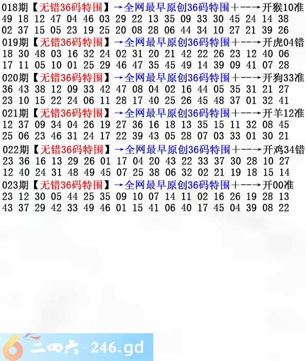 六合彩023期:无错36码