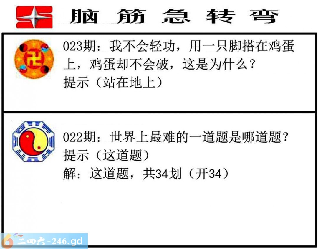 六合彩023期:脑筋急转弯