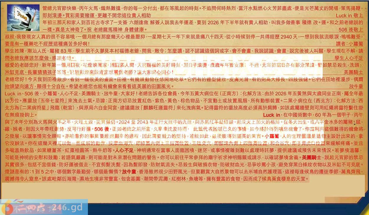 【2】.年初三那天和家人到百花古寺求了一支簽六朗逢救解簽人説我去年運差,要到2026年下半年就有貴人相助,叫我多做善事積德改。運。和之前老總説的一樣。真是太神奇了。祝老總龍馬精神身體健康。506後敬上