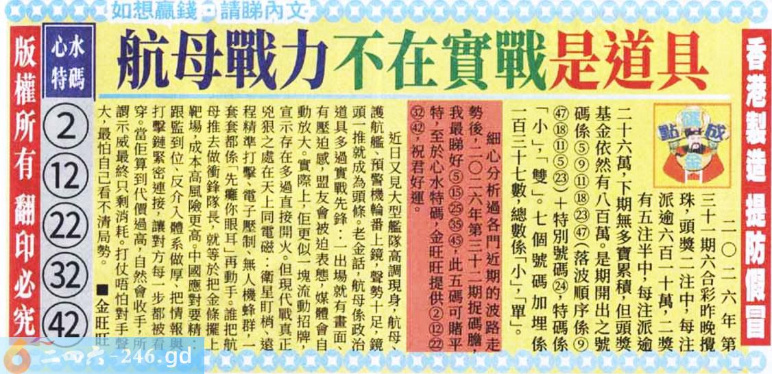 六合彩032期:老夫子会员报