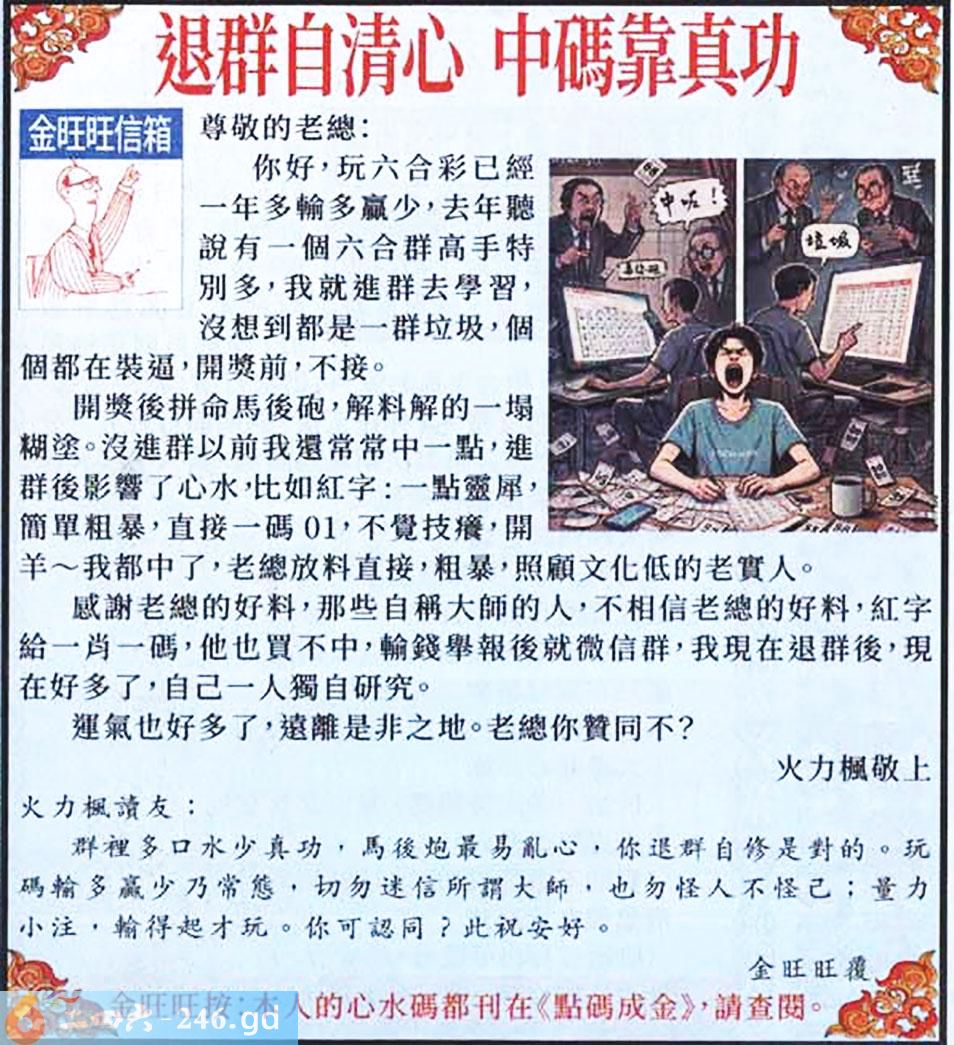 六合彩032期:金旺旺信箱彩民推荐→→《退群自清心 中碼靠實力》