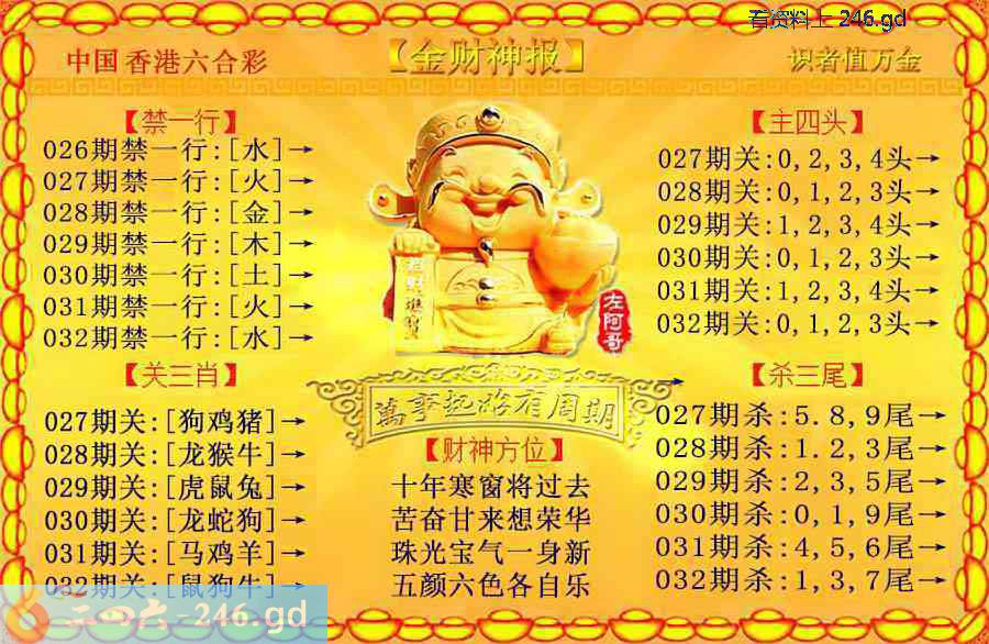 六合彩032期:金色财神