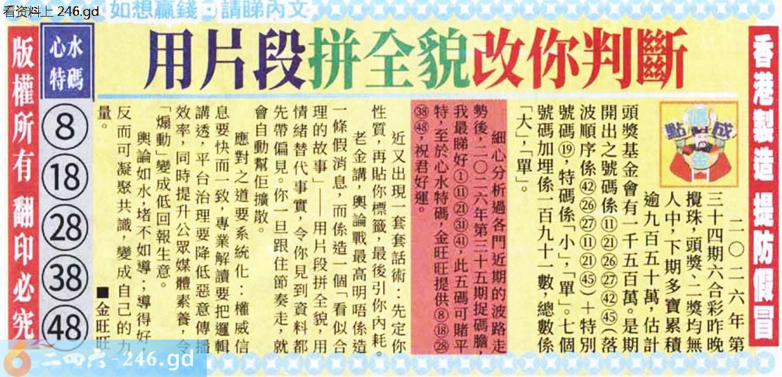 六合彩035期:金旺旺信箱彩民推荐→→《世人爭珠 少年取匣》