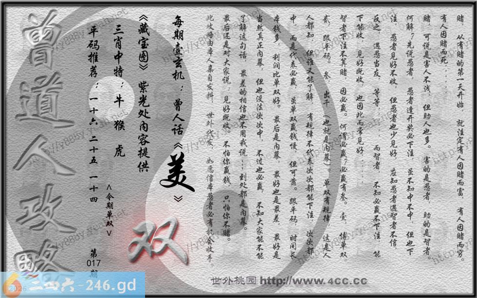 六合彩【017期】内部来料(单笔双笔发表区)已公开】