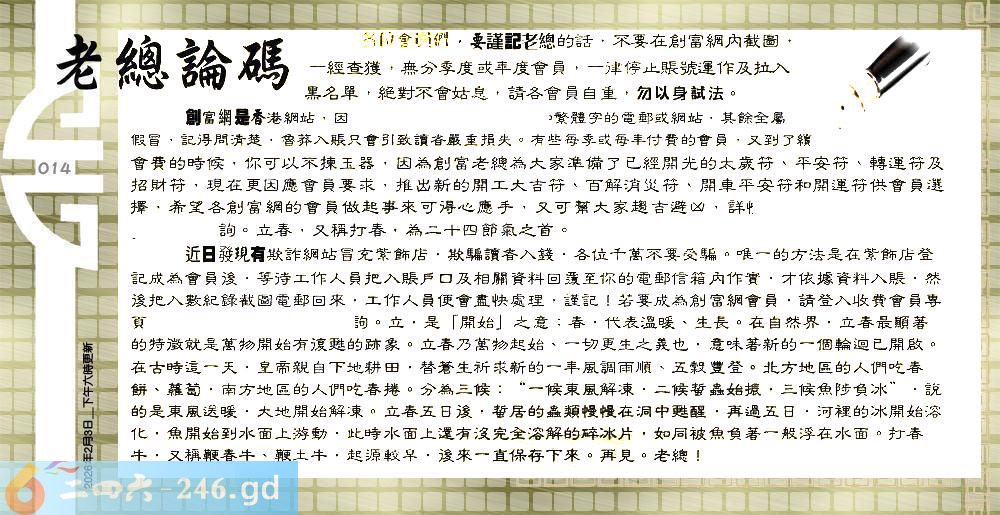 六合彩014期:六合皇金句/老总论码/萧公子/林大师/五行夺码/老总信箱截图