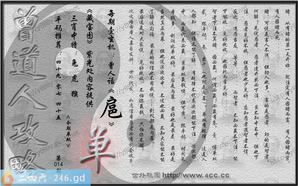 六合彩014期一句话赢大钱:家家七亩三分地。送:虎夜蛇行