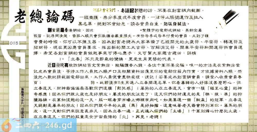 六合彩015期:六合皇金句/老总论码/萧公子/林大师/五行夺码/老总信箱截图