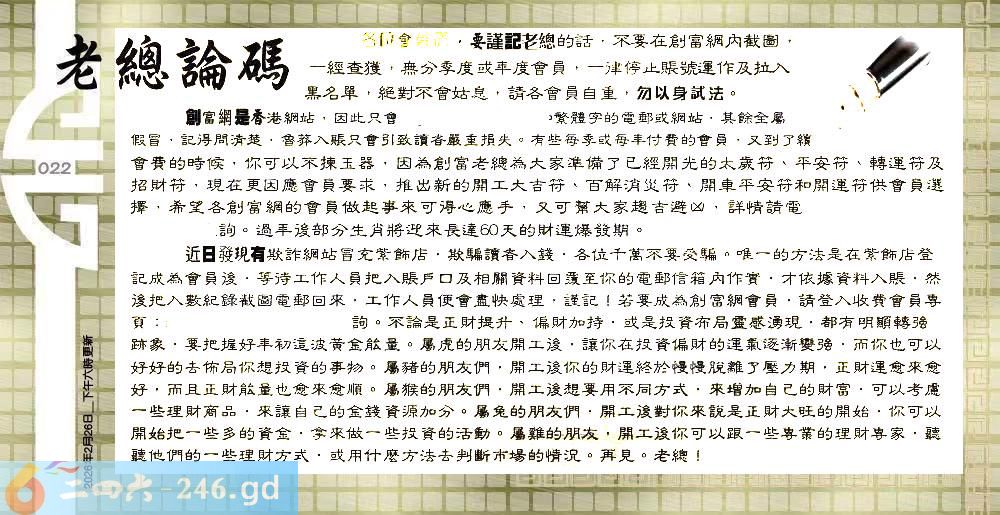 六合彩022期:六合皇金句/老总论码/萧公子/林大师/五行夺码/老总信箱截图