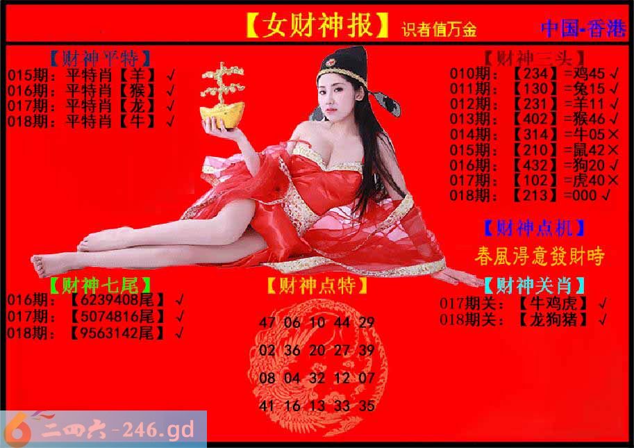 六合彩018期:女财神