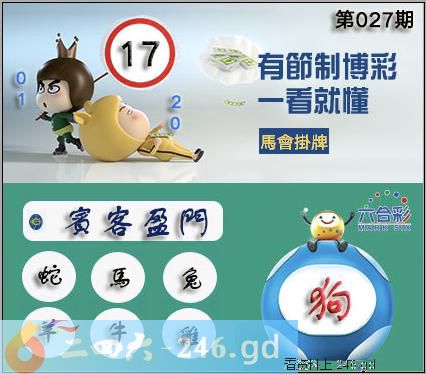 027期正版彩图挂:17爆:狗挂牌成语:宾客盈门挂牌出肖:蛇马兔羊牛鸡