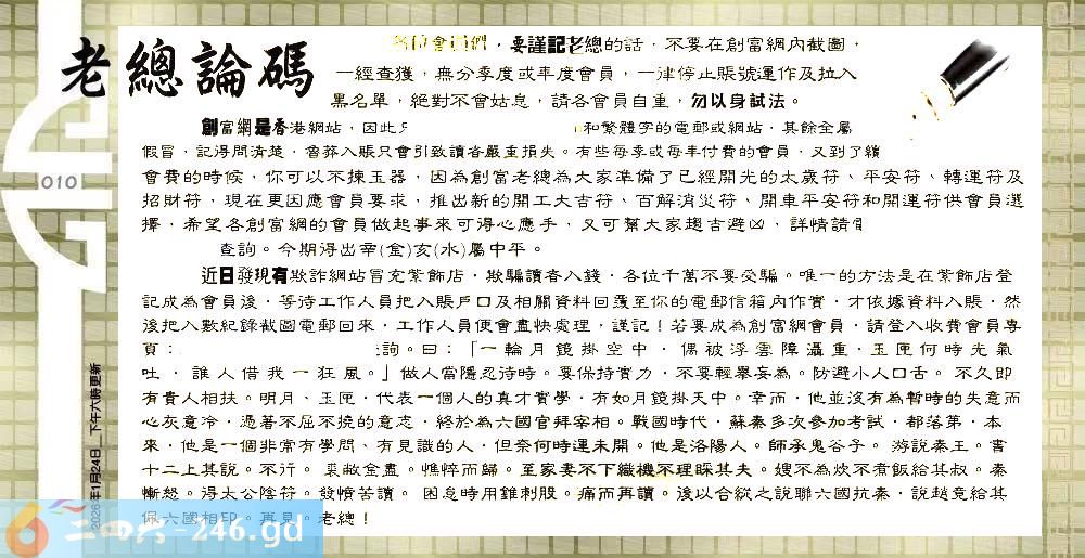 六合彩010期:六合皇金句/老总论码/萧公子/林大师/五行夺码/老总信箱截图