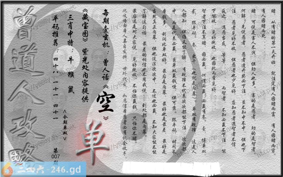 六合彩007期玄机特码料:天干地支配民俗,多彩多姿走势图。二八组合成特数,娱人娱己夜明珠。心水玄机:三五前后开