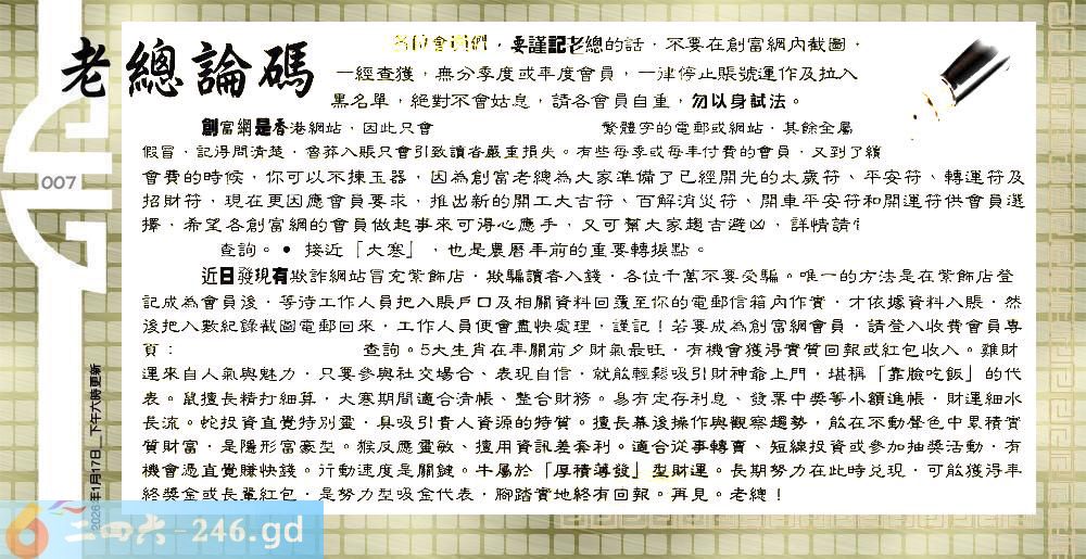 六合彩007期:六合皇金句/老总论码/萧公子/林大师/五行夺码/老总信箱截图