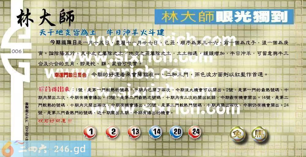 六合彩006期:更新100%〓2026乙已年香港掛牌之全篇(开奖日版)