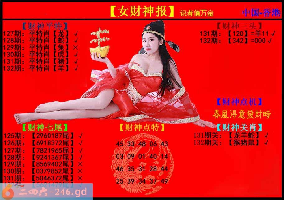 六合彩132期:女财神