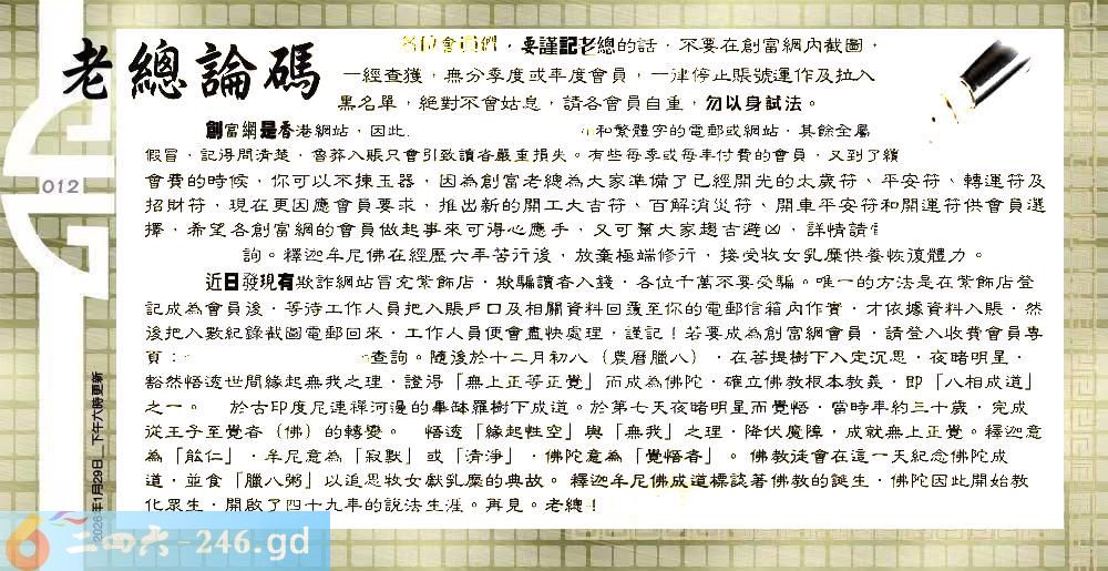 六合彩012期:六合皇金句/老总论码/萧公子/林大师/五行夺码/老总信箱截图