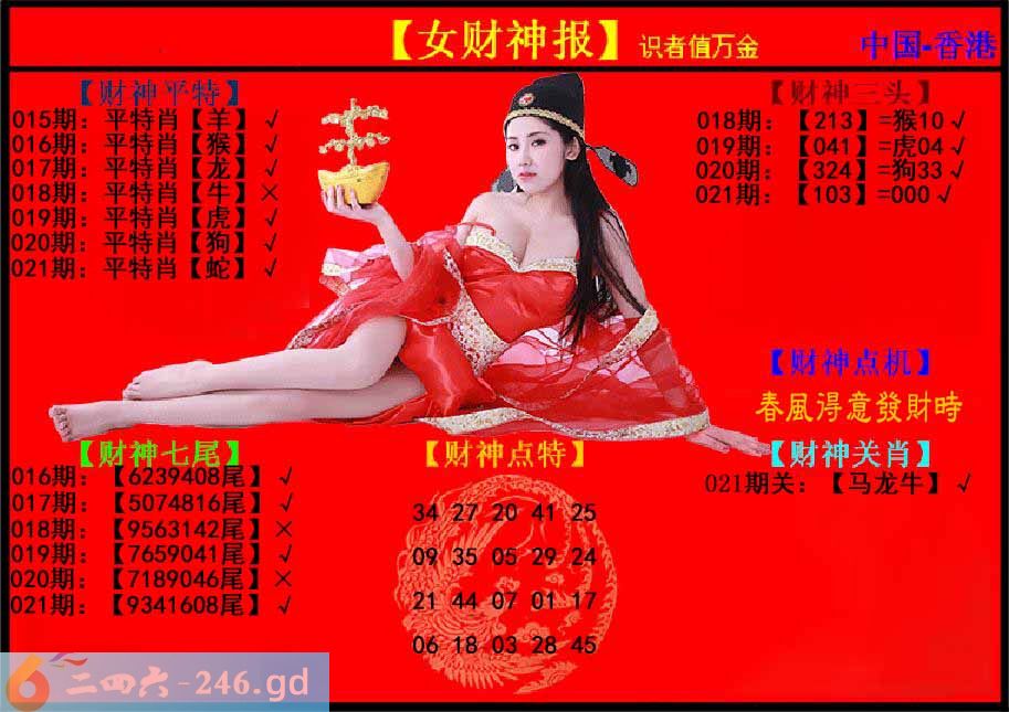 六合彩021期:女财神