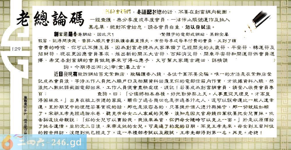六合彩129期:六合皇金句/老总论码/萧公子/林大师/五行夺码/老总信箱截图
