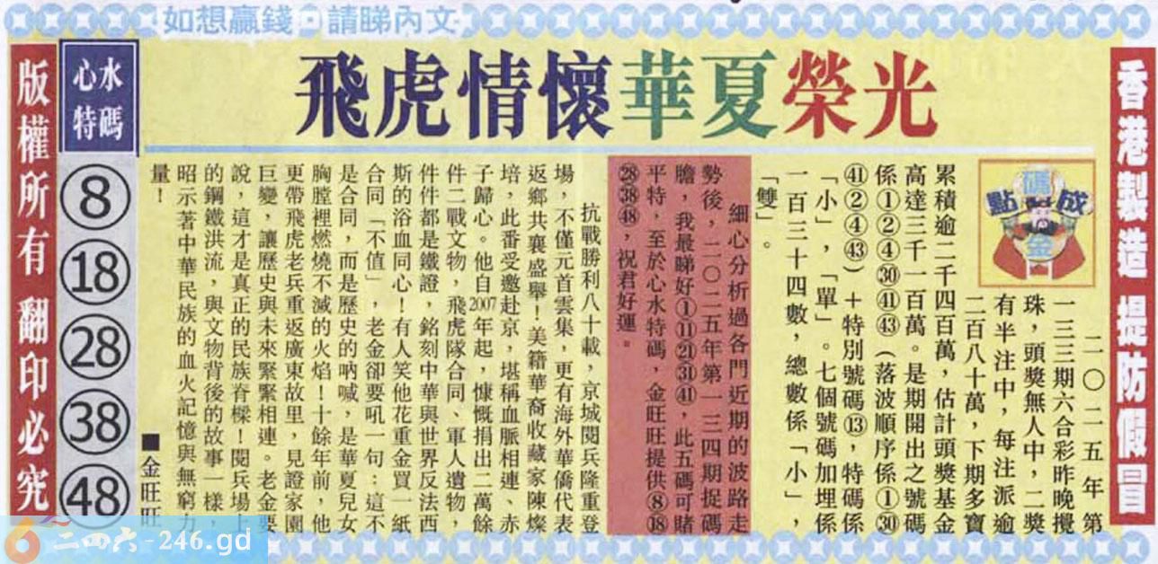 六合彩134期:金旺旺信箱彩民推荐→→《定氣神 順自然》