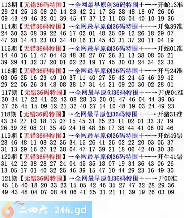 六合彩121期:无错36码
