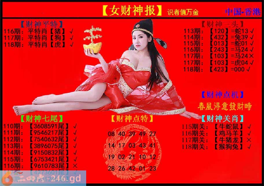 六合彩118期:女财神