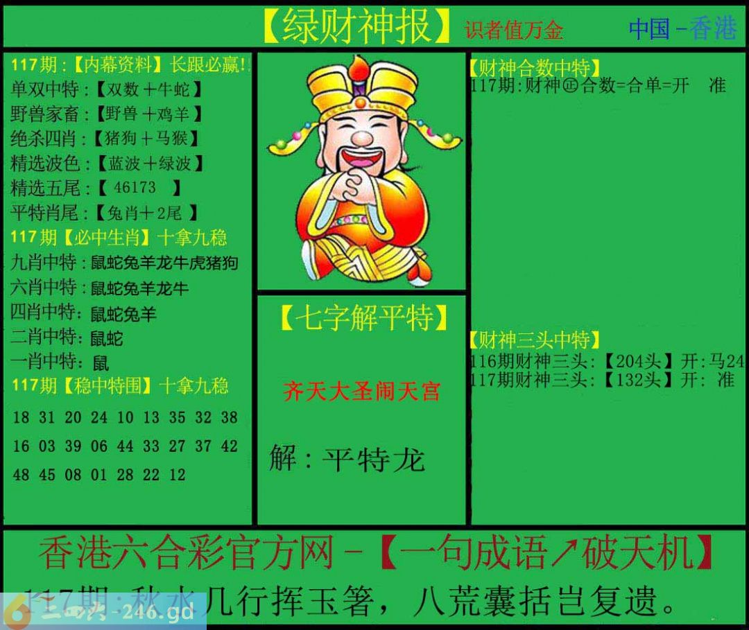 六合彩117期:绿色财神