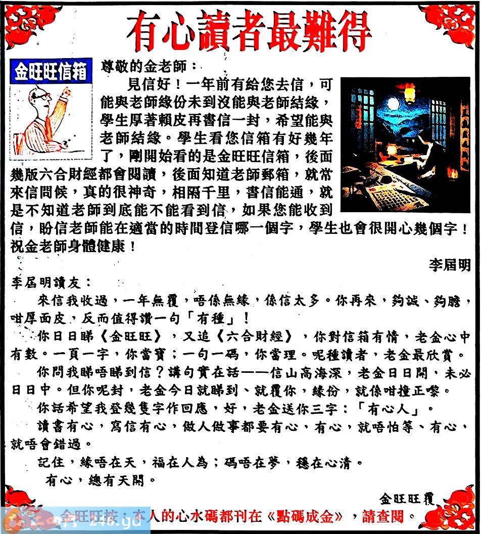 六合彩117期:金旺旺信箱彩民推荐→→《有心讀者最難得》