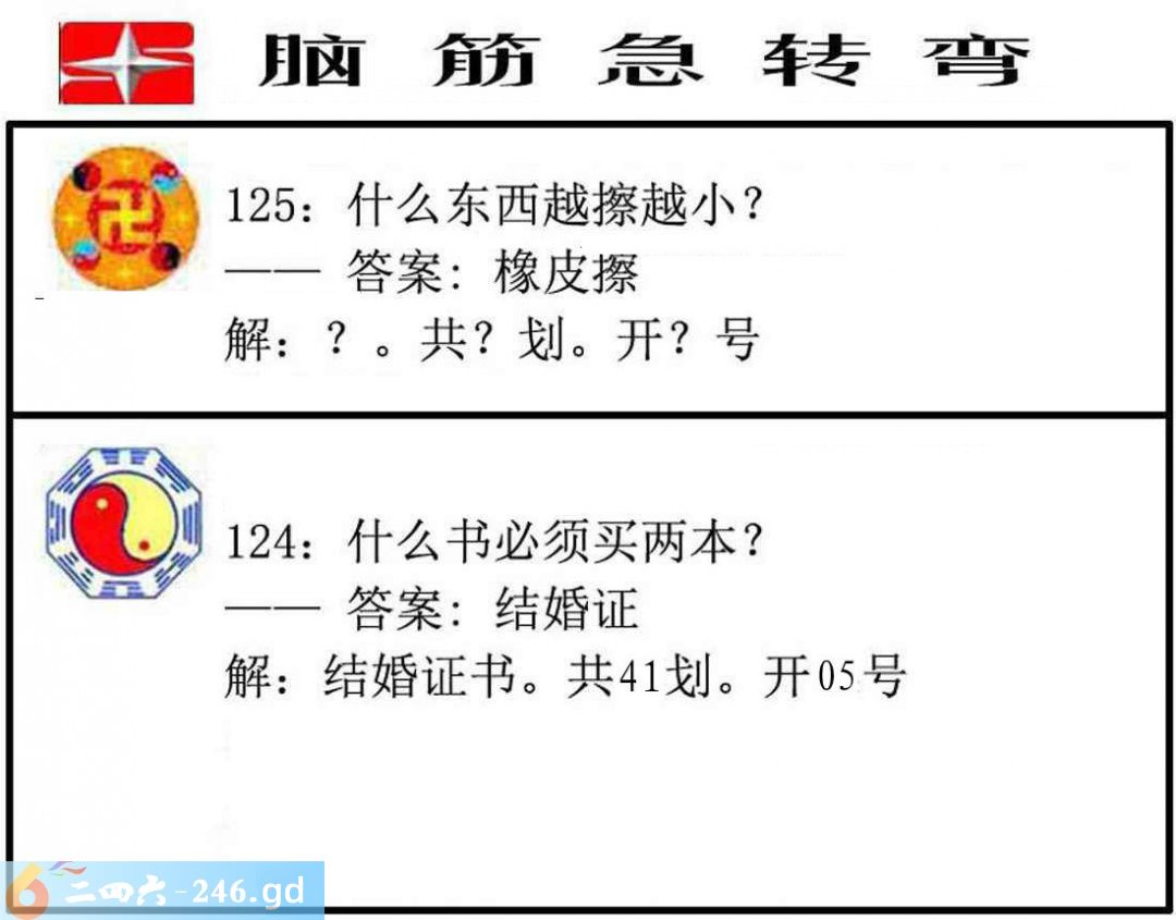 六合彩125期:脑筋急转弯
