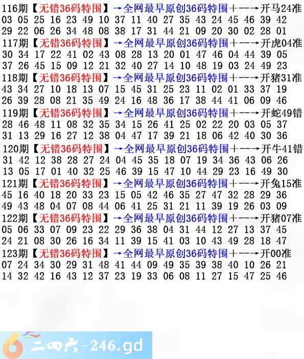 六合彩123期:无错36码