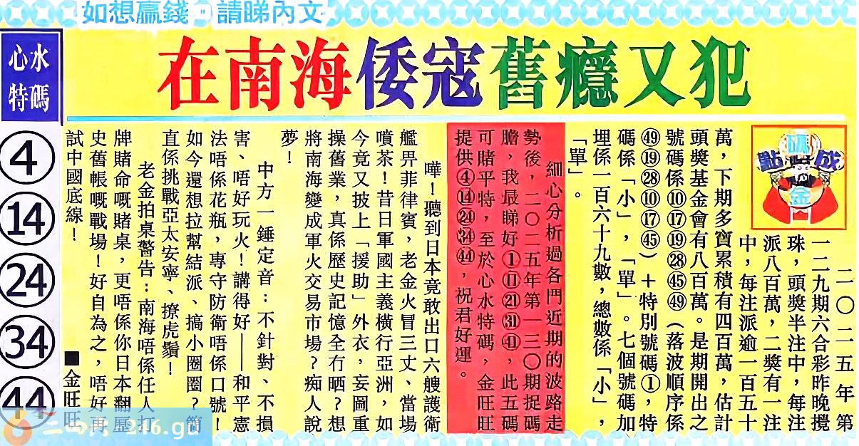 六合彩130期:金旺旺信箱彩民推荐→→《心靜風自息 淡看人生局》