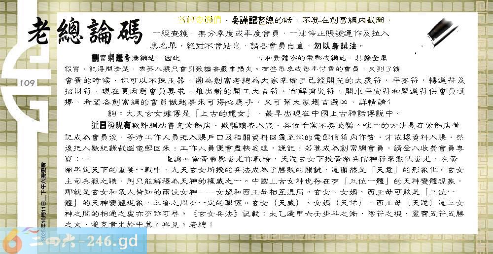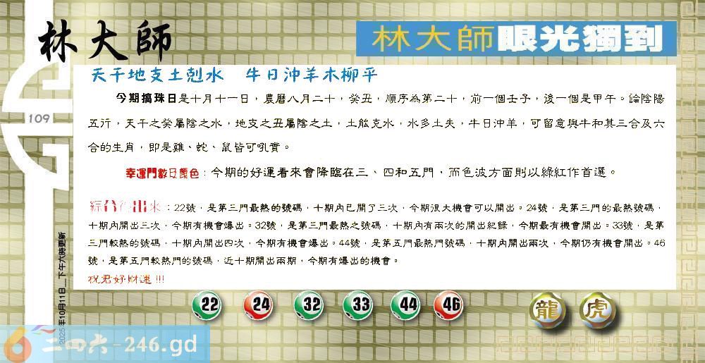 六合彩109期:更新100%〓2025乙已年香港掛牌之全篇(图库版)