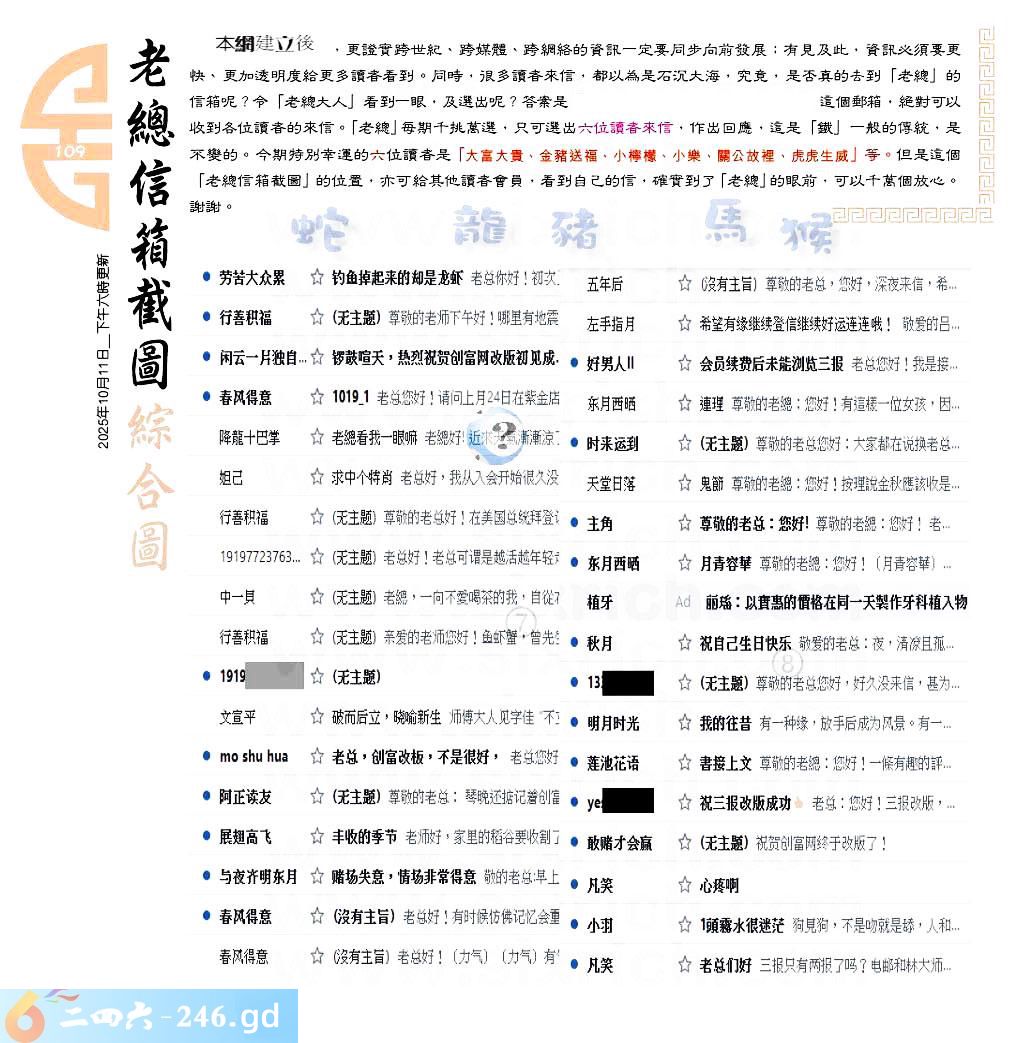 六合彩109期:六合皇金句/老总论码/萧公子/林大师/五行夺码/老总信箱截图