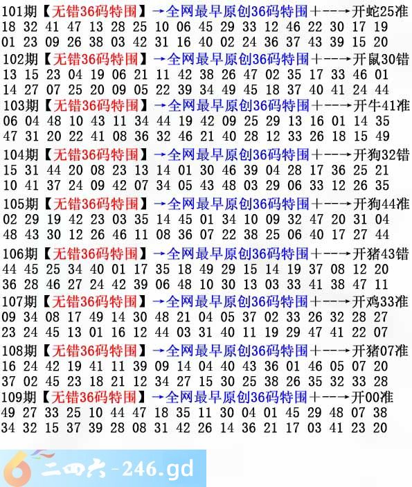 六合彩109期:无错36码