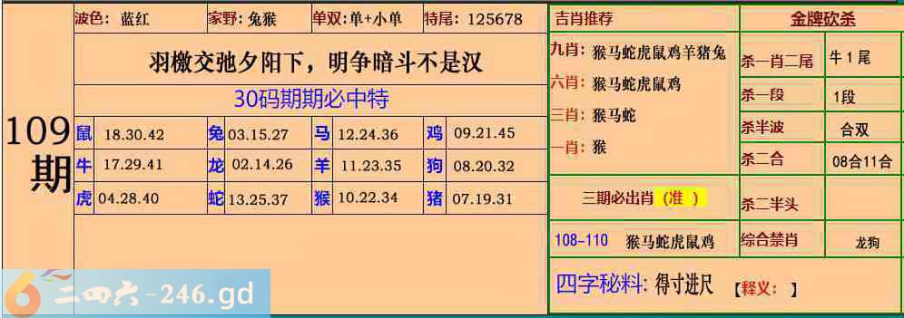 六合彩109期:30码期期特