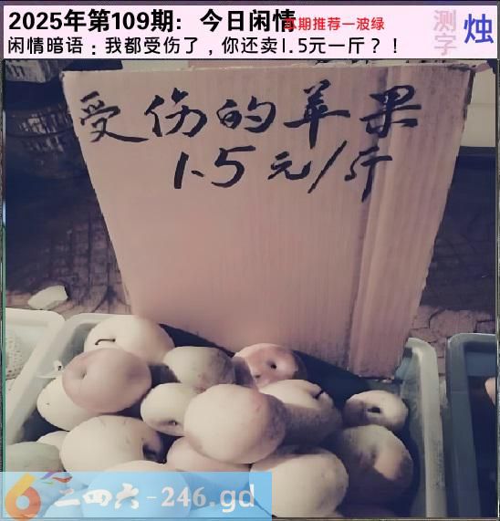 六合彩109期今日闲情②:我都受伤了,你还卖1.5元一斤?!测字:烛