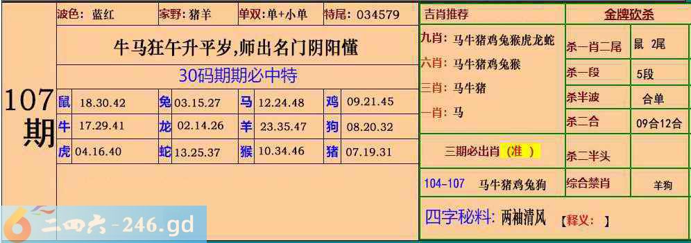 六合彩107期:30码期期特