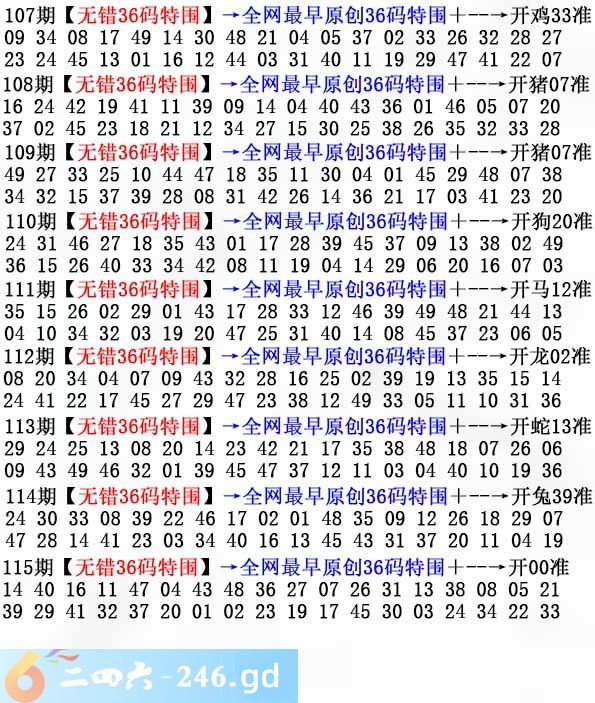 六合彩115期:无错36码