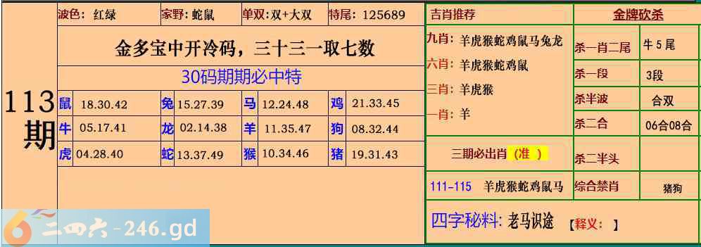 六合彩113期:30码期期特