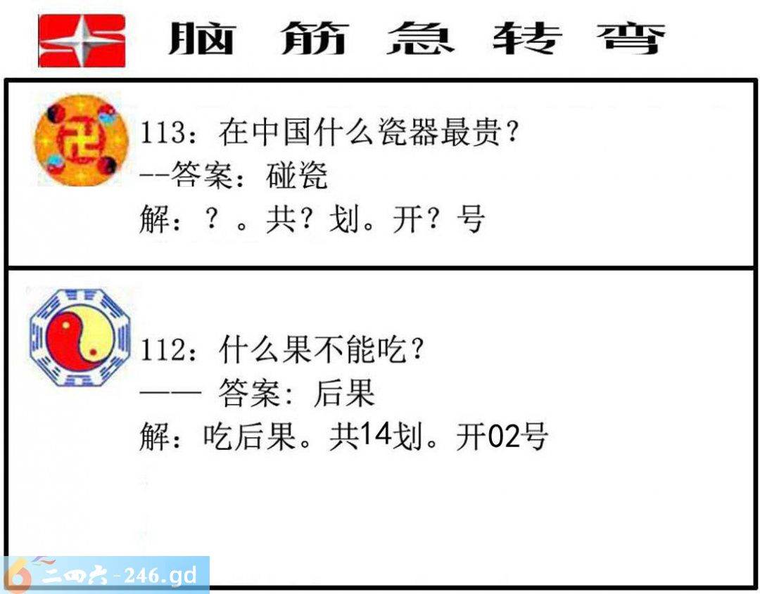 六合彩113期:脑筋急转弯