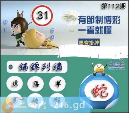 六合彩2025年112期正版彩图挂:31 爆:蛇 挂牌成语:铺锦列绣 挂牌出肖:虎马羊兔猪猴