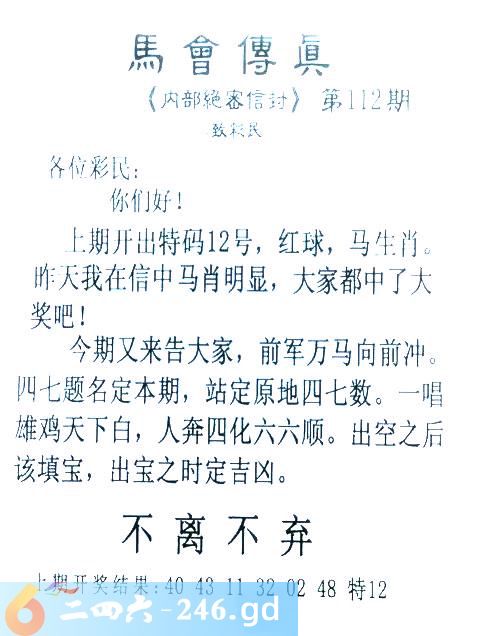 六合彩112期:首发推荐:≮馬會傳眞≯→(香港正版)