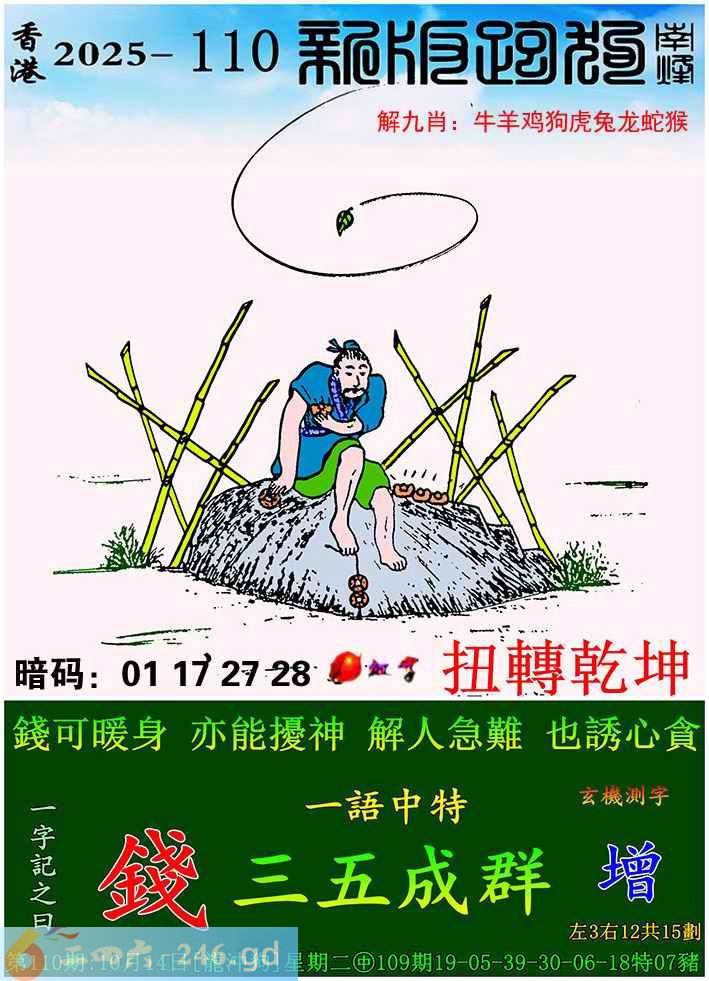 六合彩110期跑狗一字記之曰:【錢】 錢可暖身,亦能擾神。 解人急難,也誘心貪。